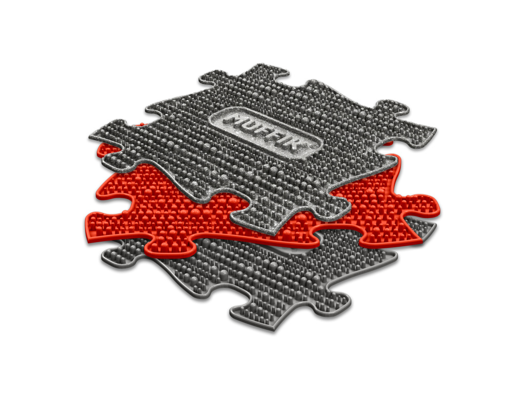 Jednym z naszych celów jest poprawa jakości mat, dlatego zmodernizowaliśmy ich spód. Rezultat jest lepszy nie tylko z punktu wyglądu, ale także funkcjonalności. Zwiększyliśmy elastyczność mat i zastosowaliśmy mocniejsze wzmocnienia, dzięki czemu uzyskaliśmy lepszą nośność. Dodatkowo wywołuje to u dzieci skojarzenie do plastra miodu. Dlatego nasza mata jest wyrafinowana ze wszystkich możliwych stron, a także bardzo atrakcyjna w wyglądzie. Dzięki specjalnie wyprofilowanym bokom mat w kształcie puzzli, poszczególne części mat łatwo się dopasowują i pozwalają na niezliczone kombinacje podczas składania.