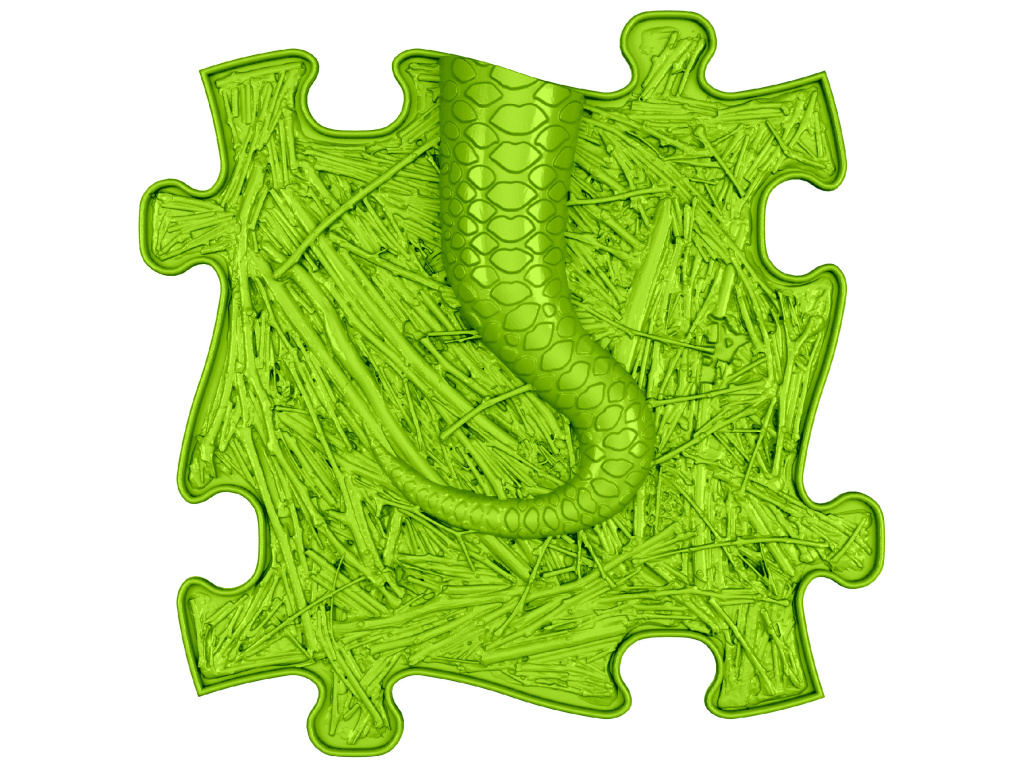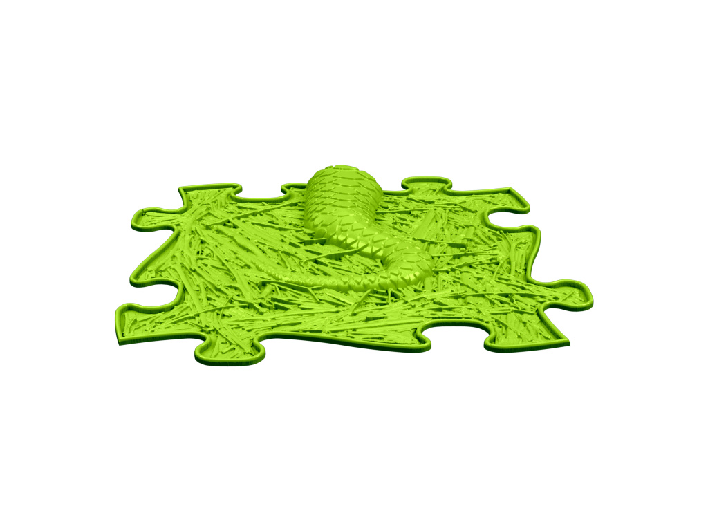 Jednym z naszych celów jest poprawa jakości mat, dlatego zmodernizowaliśmy ich spód. Rezultat jest lepszy nie tylko z punktu wyglądu, ale także funkcjonalności. Zwiększyliśmy elastyczność mat i zastosowaliśmy mocniejsze wzmocnienia, dzięki czemu uzyskaliśmy lepszą nośność. Dodatkowo wywołuje to u dzieci skojarzenie do plastra miodu. Dlatego nasza mata jest wyrafinowana ze wszystkich możliwych stron, a także bardzo atrakcyjna w wyglądzie. Dzięki specjalnie wyprofilowanym bokom mat w kształcie puzzli, poszczególne części mat łatwo się dopasowują i pozwalają na niezliczone kombinacje podczas składania.