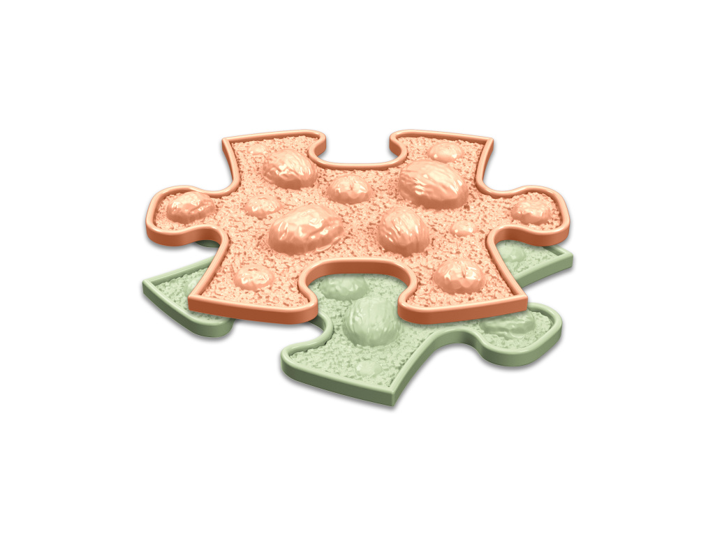 Jednym z naszych celów jest poprawa jakości mat, dlatego zmodernizowaliśmy ich spód. Rezultat jest lepszy nie tylko z punktu wyglądu, ale także funkcjonalności. Zwiększyliśmy elastyczność mat i zastosowaliśmy mocniejsze wzmocnienia, dzięki czemu uzyskaliśmy lepszą nośność. Dodatkowo wywołuje to u dzieci skojarzenie do plastra miodu. Dlatego nasza mata jest wyrafinowana ze wszystkich możliwych stron, a także bardzo atrakcyjna w wyglądzie. Dzięki specjalnie wyprofilowanym bokom mat w kształcie puzzli, poszczególne części mat łatwo się dopasowują i pozwalają na niezliczone kombinacje podczas składania.