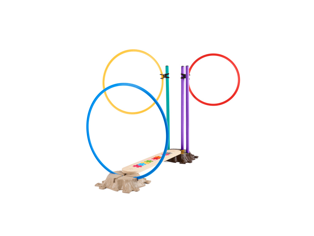 Za pomocą uniwersalnego łącznika przymocuj plastikowe kółko do drążka umieszczonego w pniaku aby stworzyć poziome i pionowe przeszkody, które zagwarantują poprawę zręczności i koordynacji, wzmocni tułów Twojego dziecka i poprawi Jego elastyczność. Dzieci mogą rzucać kółkiem na patyk umieszczony w pniaku, aby ćwiczyć dokładność i koordynację wzrokowo-ruchową. Kółka mogą być używane jako klasyczne Hula Hoop do aktywowania i wzmacniania rdzenia kręgosłupa. Za pomocą kijów można z łatwością tworzyć różnorodne przeszkody i zabawy dostosowane do wieku i możliwości Twoich dzieci. Stworzenie przeszkody o regulowanej wysokości, którą można przeskakiwać, wspinać się lub czołgać za pomocą połączeń, to dopiero początek przygody.