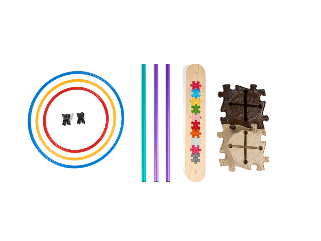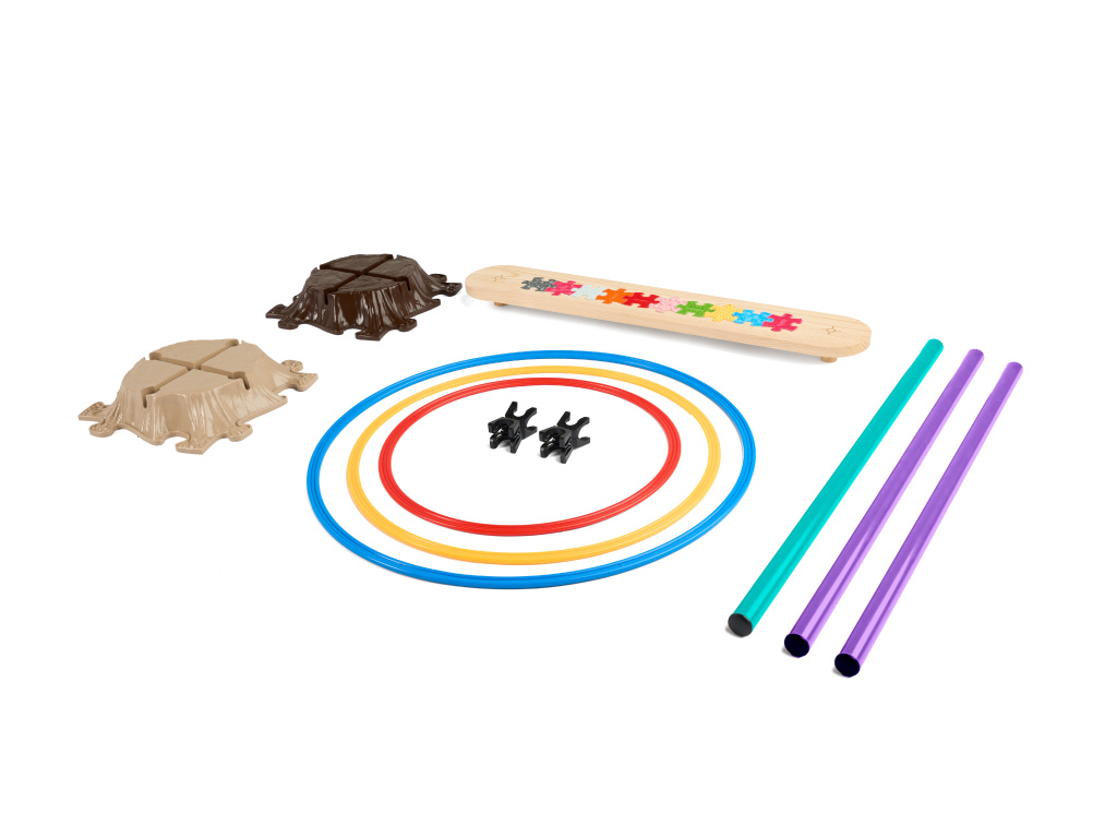 Mały zestaw aktywny przeznaczony jest do ćwiczeń motorycznych w różnych grupach wiekowych. Poszczególne części zestawu można używać samodzielnie lub w połączeniu ze wszystkimi innymi częściami, aby umożliwić dzieciom rozwój umiejętności sportowych i motorycznych.
