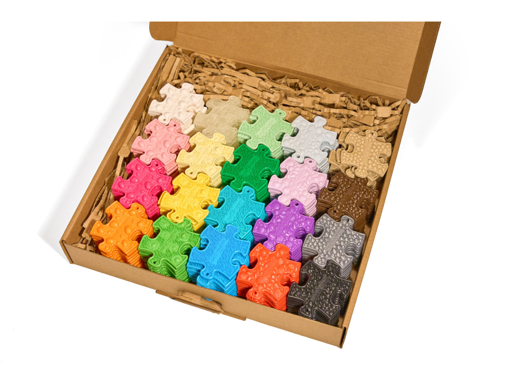Zestaw nanopuzzelków jest idealnym dodatkiem do posiadanego już zestawu mat ortopedycznych MUFFIK. Cieszcie się dotykową grą memory, która koncentruje się na umiejętnościach dotykowych i pomaga zwiększyć koncentrację, uwagę i ogólny rozwój inteligencji Twojego dziecka lub uczcie się w formie zabawy podczas dopasowywania kolorów. Połączenie tych produktów otwiera świat pełen zabaw i radości.