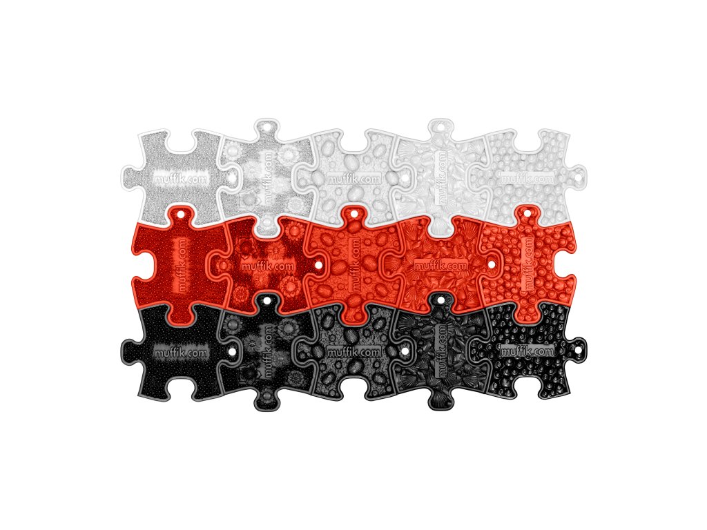 Puzzle te stanowią idealne uzupełnienie posiadanego już zestawu mat ortopedycznych „Baby Set – Czarno na białym”. Ciesz się dotykową grą memory, która skupia się na zdolnościach dotykowych i pomaga zwiększyć koncentrację, uwagę i ogólny rozwój inteligencji Twojego dziecka, lub baw się dobrze, dopasowując kolory. Połączenie tych produktów otwiera świat pełen gier, radości i nowych wrażeń.